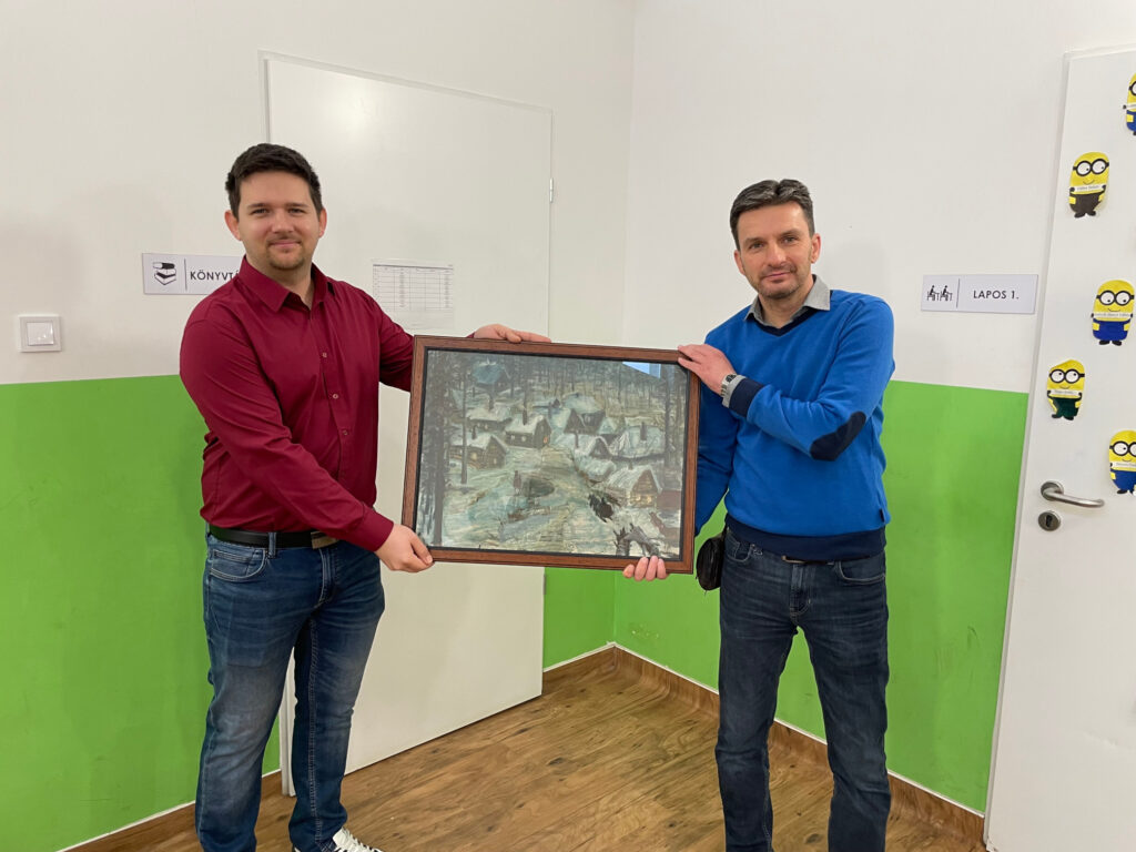 Iskolánk egykori igazgatójának, Kovacsik Istvánnak unokája intézményünknek adományozta nagyapjának a „Kárpátalja” c. festményét.
