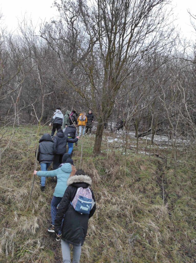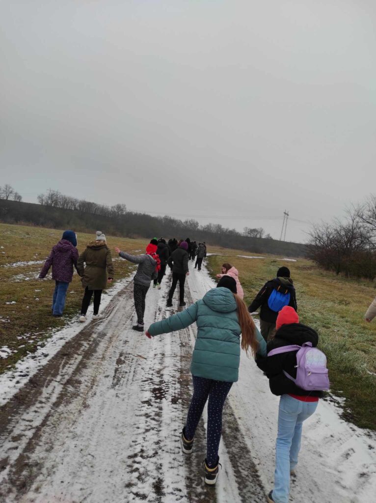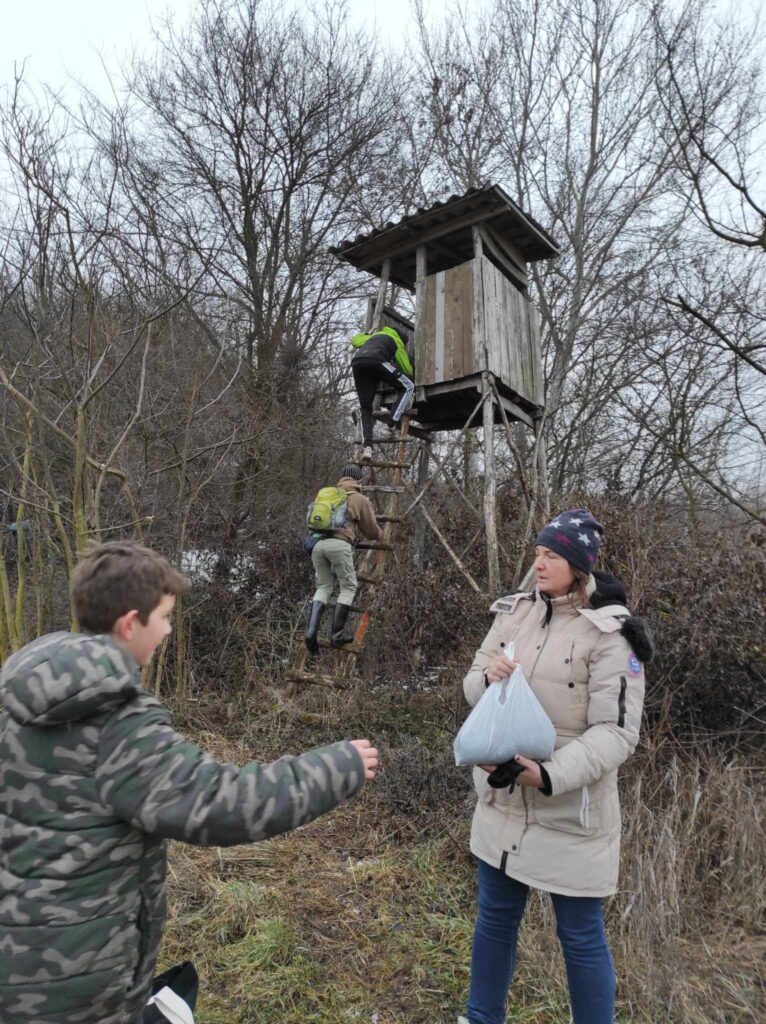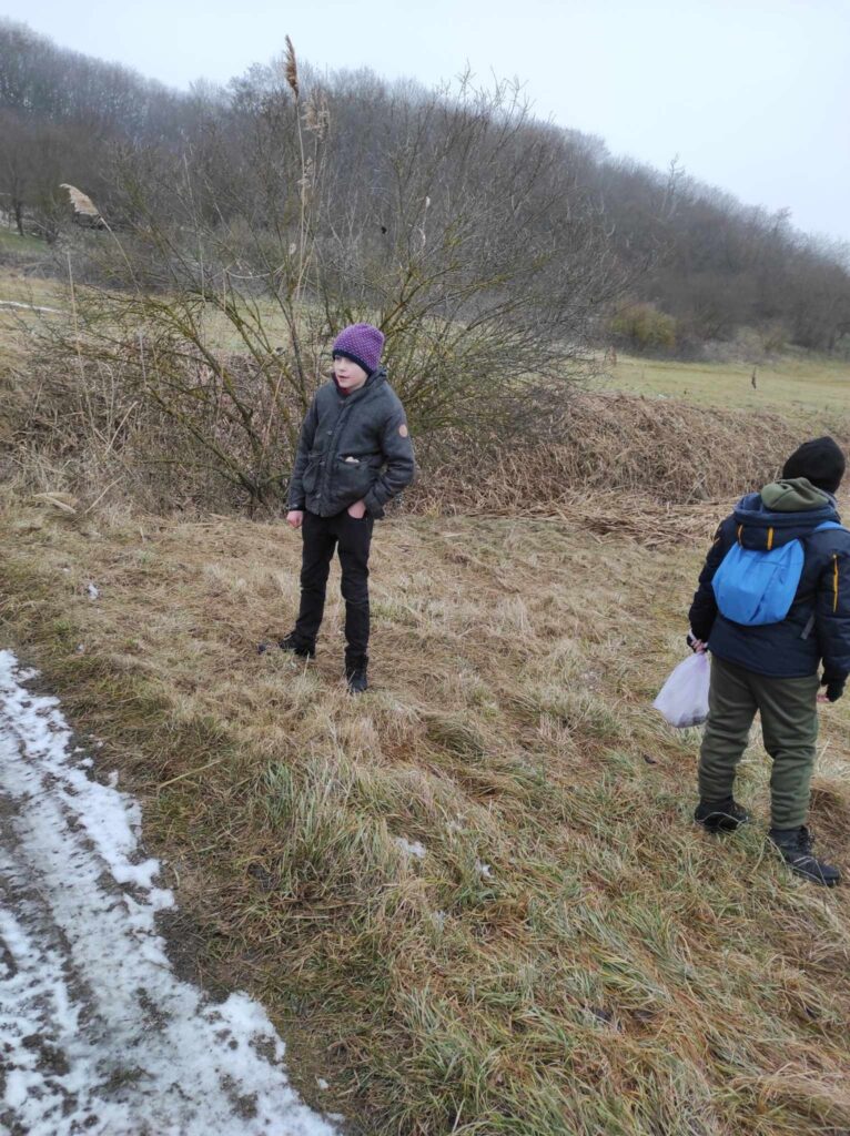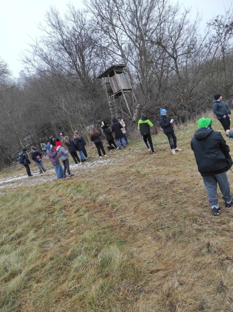Egy hideg téli napon elindultunk a felsős gyerekekkel egy madártetető túrára. Bár az időjárás csípős volt, szerencsére nem fújt a szél, így igazán kellemes séta kerekedett belőle. Az erdei út néhol csúszós volt, és akadt egy-két megcsúszás, de a gyerekek ezt is nevetéssel fogadták.
