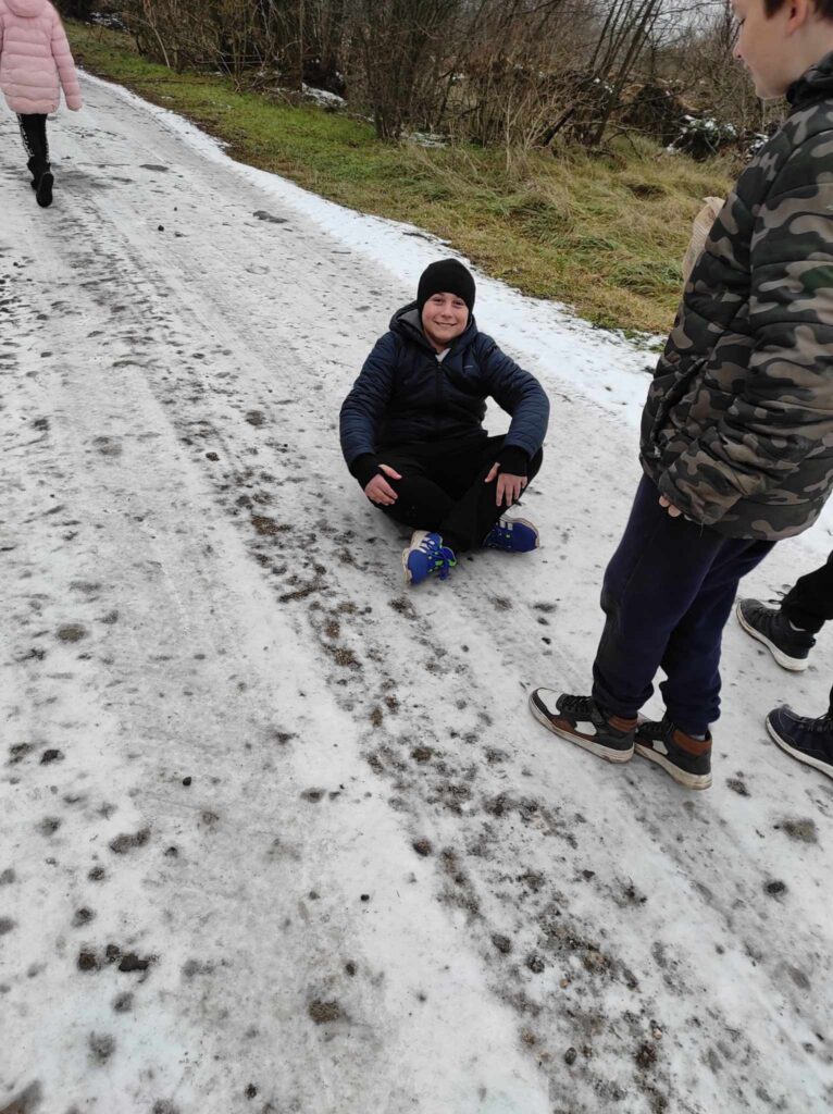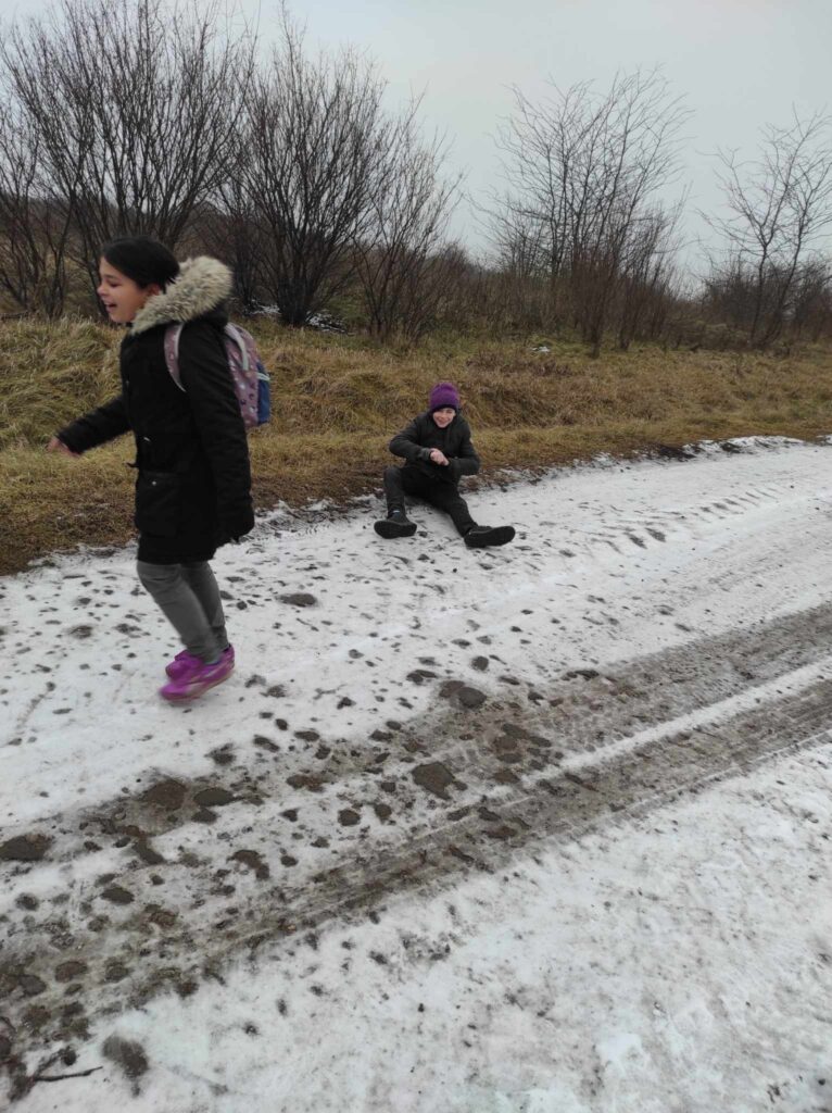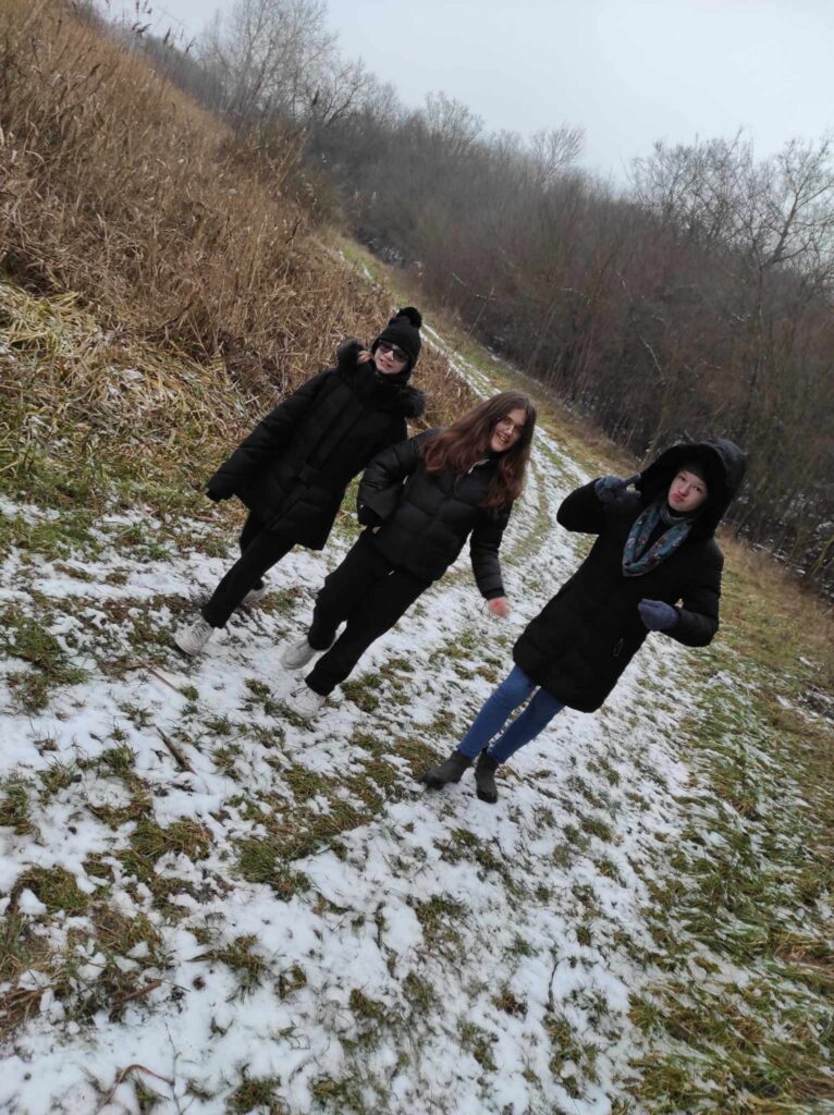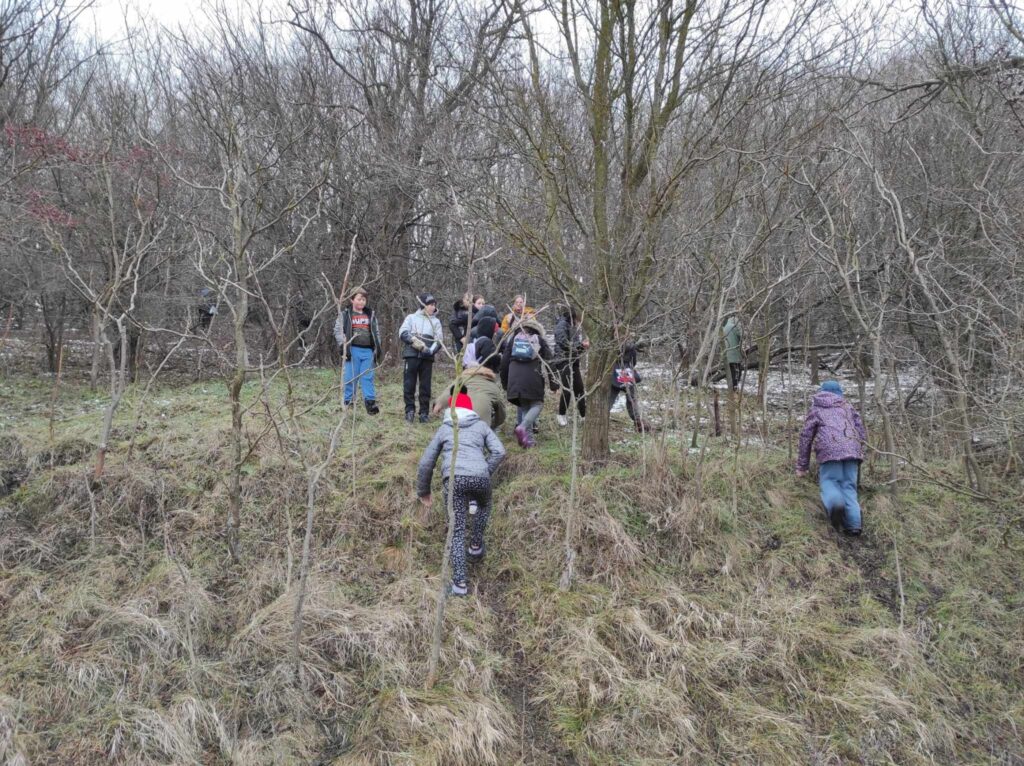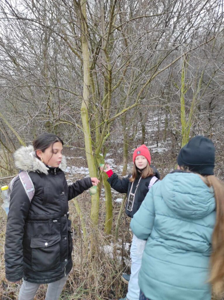 Egy hideg téli napon elindultunk a felsős gyerekekkel egy madártetető túrára. Bár az időjárás csípős volt, szerencsére nem fújt a szél, így igazán kellemes séta kerekedett belőle. Az erdei út néhol csúszós volt, és akadt egy-két megcsúszás, de a gyerekek ezt is nevetéssel fogadták.