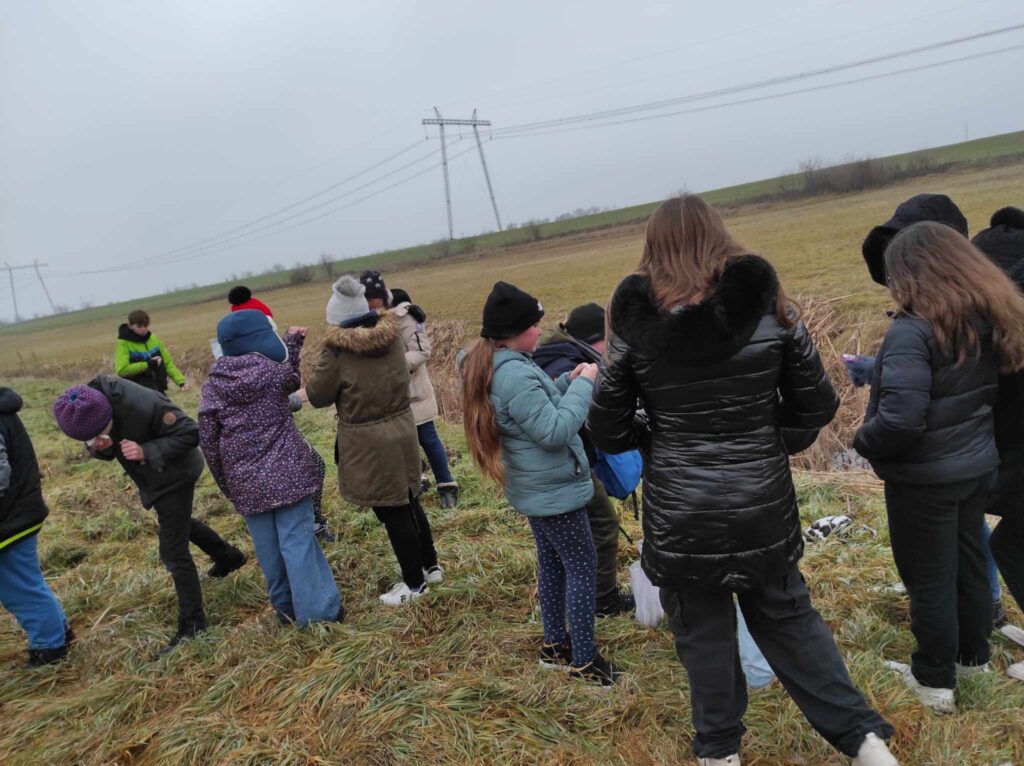 A túrára nem érkeztünk üres kézzel: otthonról magvakat és egyéb finomságokat hoztunk a madaraknak. Útközben ezeket gondosan kihelyeztük: faágakra akasztottuk, és az út mentén szórtuk el, hogy a környékbeli madarak is hozzájuthassanak egy kis téli lakomához.