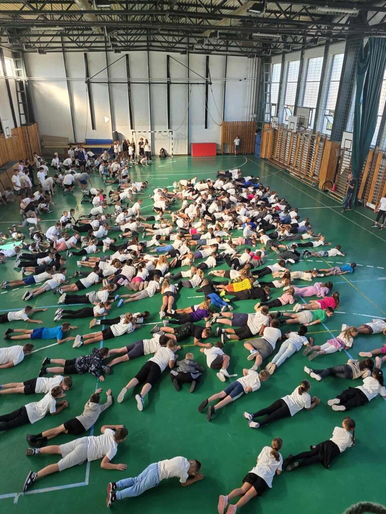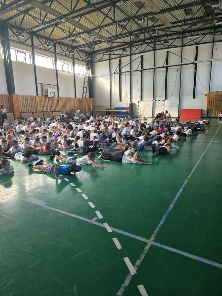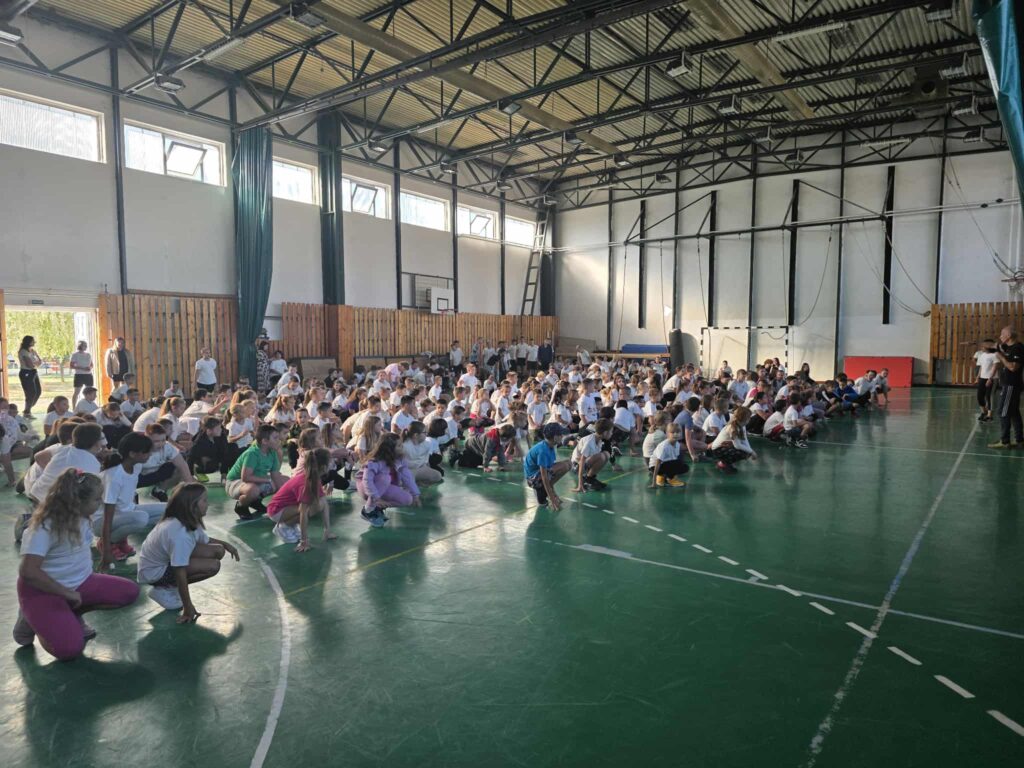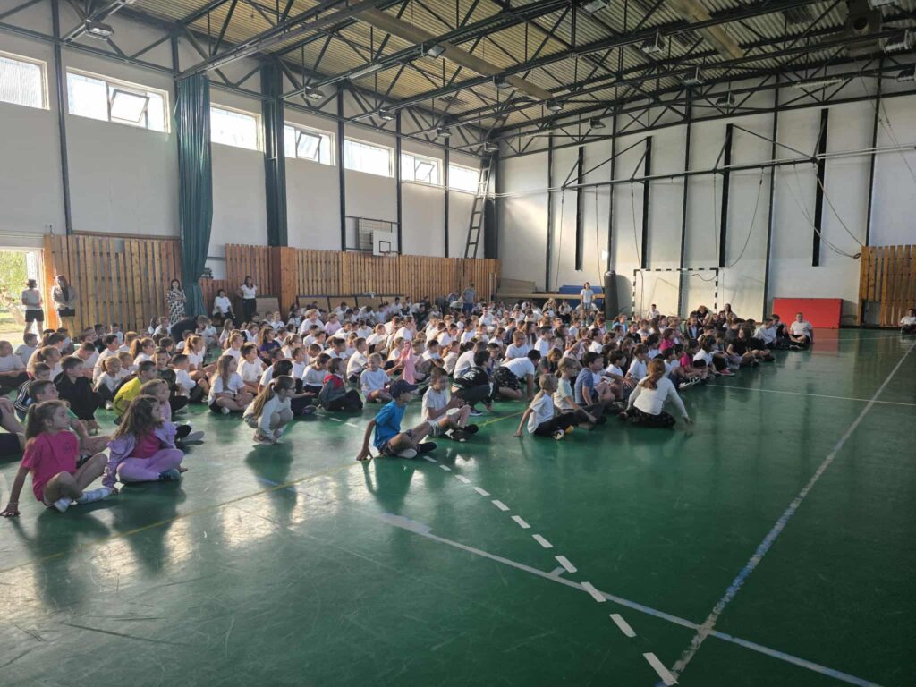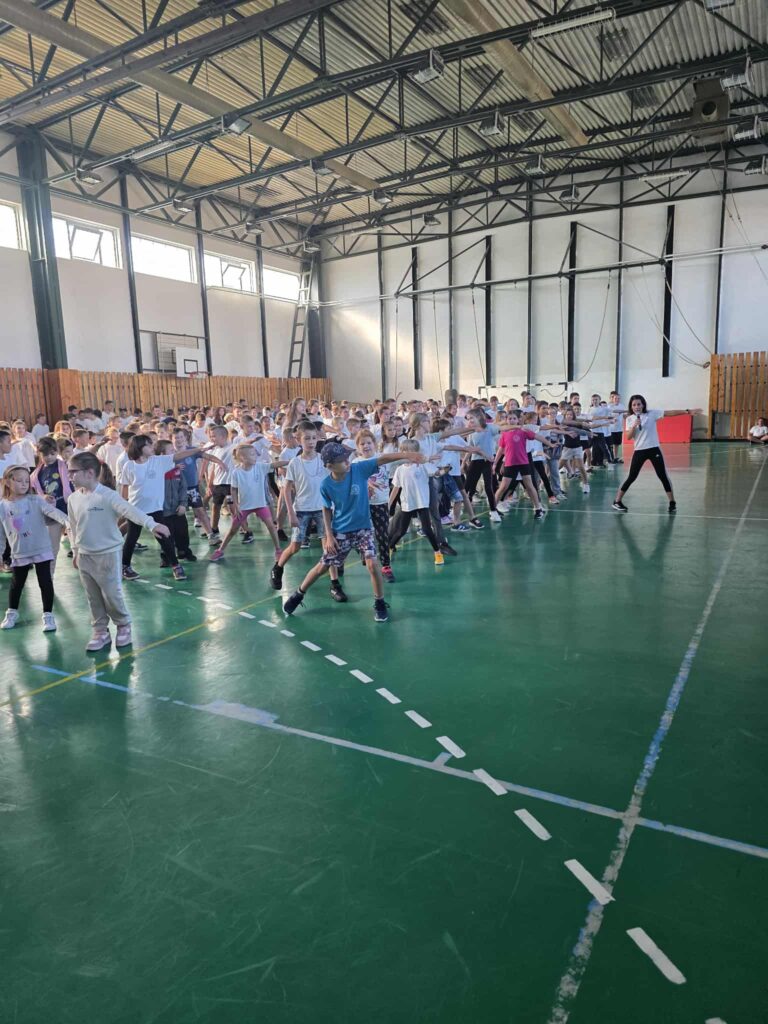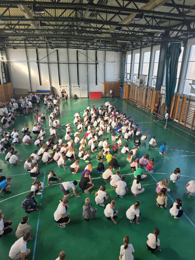 Szeptember első napján, reggel vidám hangulatban tartottuk meg az évnyitót iskolánkban. A gyerekek az iskola egyenpólójában, sportosan érkeztek, így közösen tisztelegtünk tornatermünk 40 éves jubíleuma előtt.